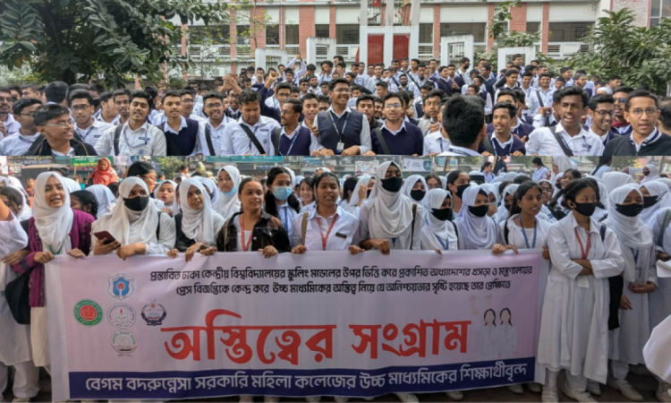 প্রস্তাবিত ঢাকা সেন্ট্রাল ইউনিভার্সিটির স্কুলিং মডেলের উপর ভিত্তি করে প্রকাশিত অধ্যাদেশের খসড়া ও মন্ত্রণালয়ের প্রেস বিজ্ঞপ্তির প্রতি ক্ষোভ জানিয়ে বিক্ষোভ করছেন ৫ কলেজের উচ্চমাধ্যমিক শিক্ষার্থীরা। এসময় উচ্চ মাধ্যমিকের অস্তিত্ব নিয়ে অনিশ্চয়তায় নতুন বিশ্ববিদ্যালয়ের ‘স্কুলিং মডেলে প্রতিষ্ঠার’ বিরোধীতা করেন তারা।