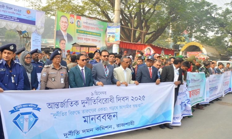 রাজশাহীতে আন্তর্জাতিক দুর্নীতি বিরোধী দিবস পালন করা হয়েছে। এ উপলক্ষে সোমবার সকালে দুর্নীতি দমন কমিশনের (দুদক) বিভাগীয় কার্যালয়, জেলা প্রশাসন, পুলিশ প্রশাসন, মহানগর দুর্নীতি প্রতিরোধ কমিটি, সচেতন নাগরিক কমিটি এবং বিভিন্ন শিক্ষাপ্রতিষ্ঠানের যৌথ উদ্যোগে মানববন্ধন, আলোচনা সভা ও সাংস্কৃতিক অনুষ্ঠানের আয়োজন করা হয়।