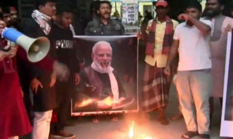 ঢাবিতে নরেন্দ্র মোদির কুশপুতুল দাহ, জুতা নিক্ষেপ