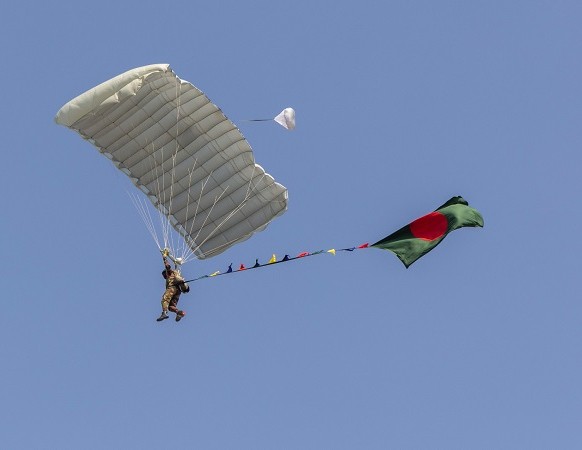 মঙ্গলবার (১৬ ডিসেম্বর) বেলা ১২টার দিকে ঢাকার তেজগাঁওয়ে পুরাতন বিমানবন্দরের জাতীয় প্যারেড স্কয়ারে ১২ হাজার ফুট উচ্চতা থেকে লাফিয়ে মাটিতে অবতরণ করেন তারা।