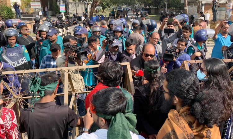 ভারতীয় আধিপত্যবাদ বিরোধী মঞ্চের রাজশাহী ভারতীয় সহকারী হাইকমিশনার কার্যালয় ঘেরাও কর্মসূচিতে পুলিশের বাধা।