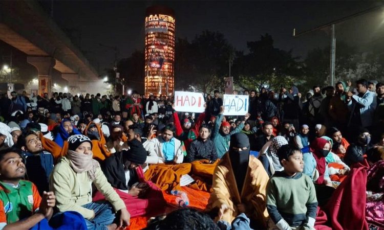 তীব্র শীত উপেক্ষা করে হাদি হত্যার বিচার দাবিতে মধ্যরাতেও উত্তাল শাহবাগ