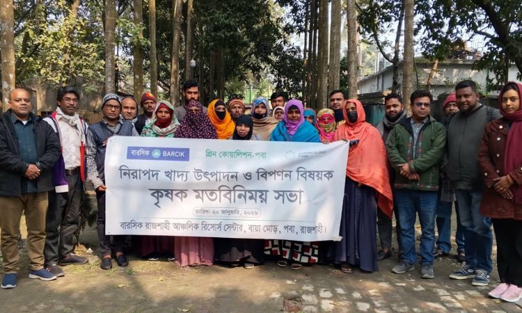রাজশাহীতে নিরাপদ খাদ্য উৎপাদন ও বিপণন বিষয়ক কৃষক মতবিনিময় সভা অনুষ্ঠিত হয়েছে। মঙ্গলবার (২০ জানুয়ারি,) সকাল ১০ টায় বারসিক রাজশাহী আঞ্চলিক রিসোর্স সেন্টারে বারসিক ও পবা গ্রীন কোয়ালিশনের আয়োজনে এ মতবিনিময় সভা অনুষ্ঠিত হয়।