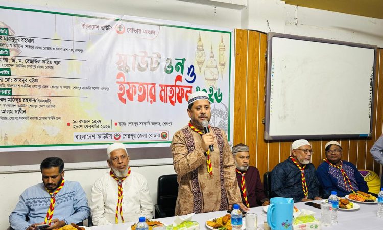 বাংলাদেশ স্কাউটস শেরপুর জেলা রোভারের উদ্যোগে স্কাউট ওন ও ইফতার মাহফিল-২০২৬ অনুষ্ঠিত হয়েছে।