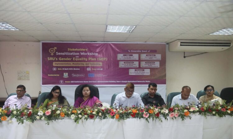 শেরেবাংলা কৃষি বিশ্ববিদ্যালয়ে (শেকৃবি) ‘মেইনস্ট্রিমিং জেন্ডার ইকুয়ালিটি ইন একাডেমিয়া’ (MAGENDA) প্রকল্পের আওতায় ‘স্টেকহোল্ডারস সেনসিটিজেশন ওয়ার্কশপ অন সাউস জেন্ডার ইকুয়ালিটি প্ল্যান (GEP): ইমপ্লিমেন্টেশন, মনিটরিং অ্যান্ড ইভ্যালুয়েশন’ শীর্ষক একটি গুরুত্বপূর্ণ কর্মশালা অনুষ্ঠিত হয়েছে। সোমবার বিশ্ববিদ্যালয়ের প্রশাসনিক ভবনের কনফারেন্স রুমে এই অনুষ্ঠানের আয়োজন করা হয়।